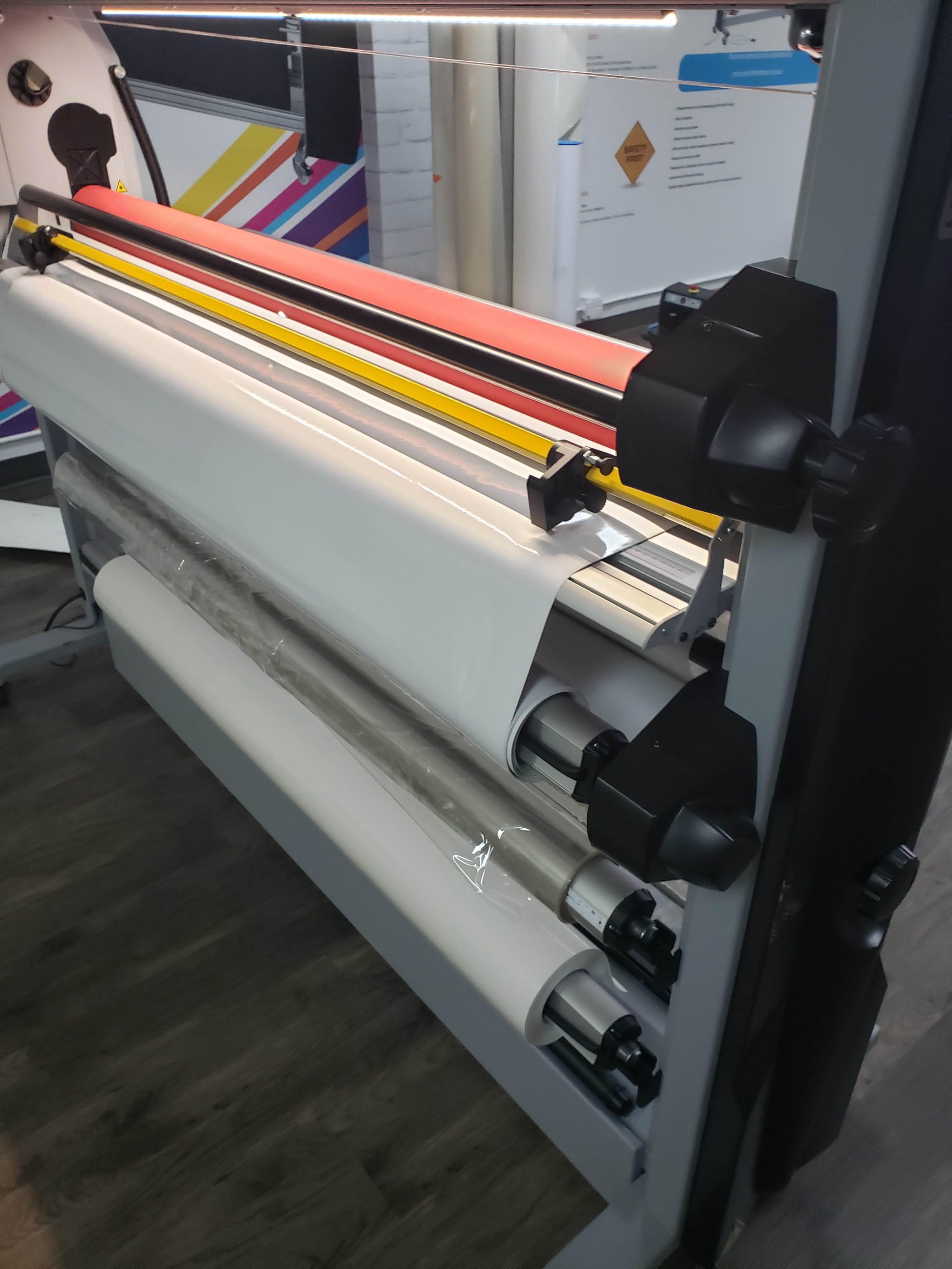 The Kala Mistral is a high quality, high speed cold laminator with upper heated roller and integrated "roll to roll" assembly.